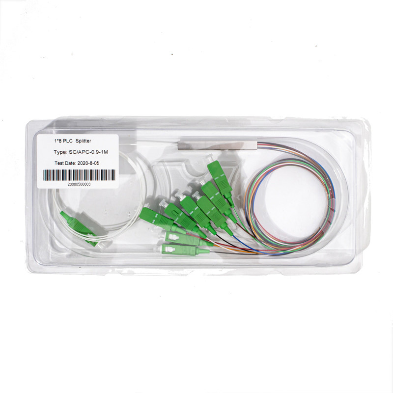 Fiber Optic 1X8 Mini PLC splitter SC APC Connector 0.9mm, 1M